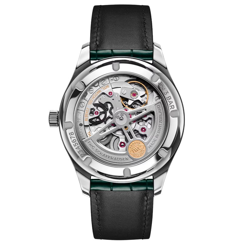 • Mecanismo: Movimiento de la manufactura IWC, cuerda automática. Frecuencia 28.800 VPH (4.0 Hz). Calibre 82200.