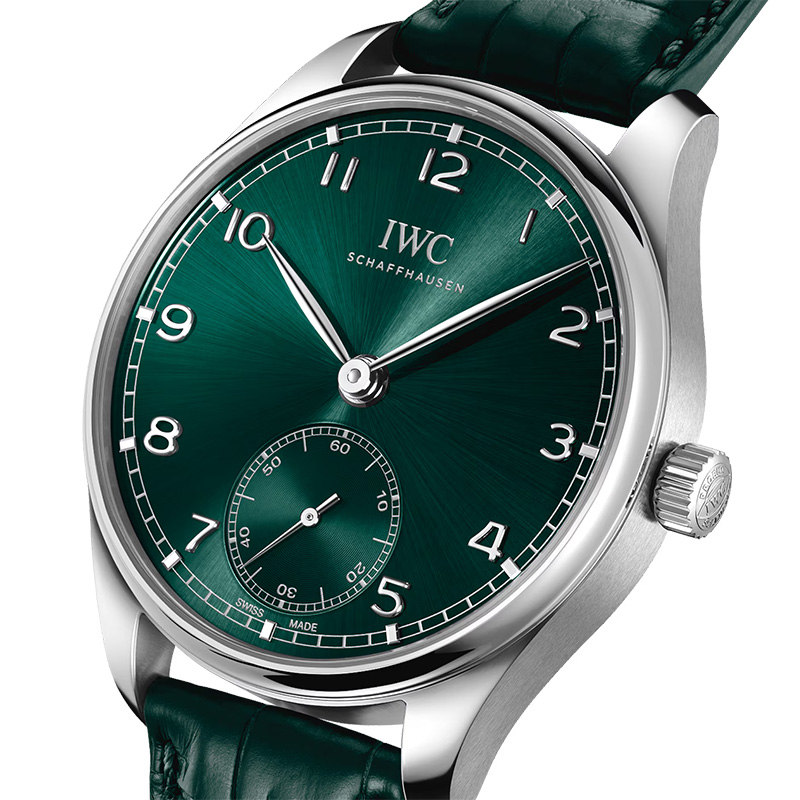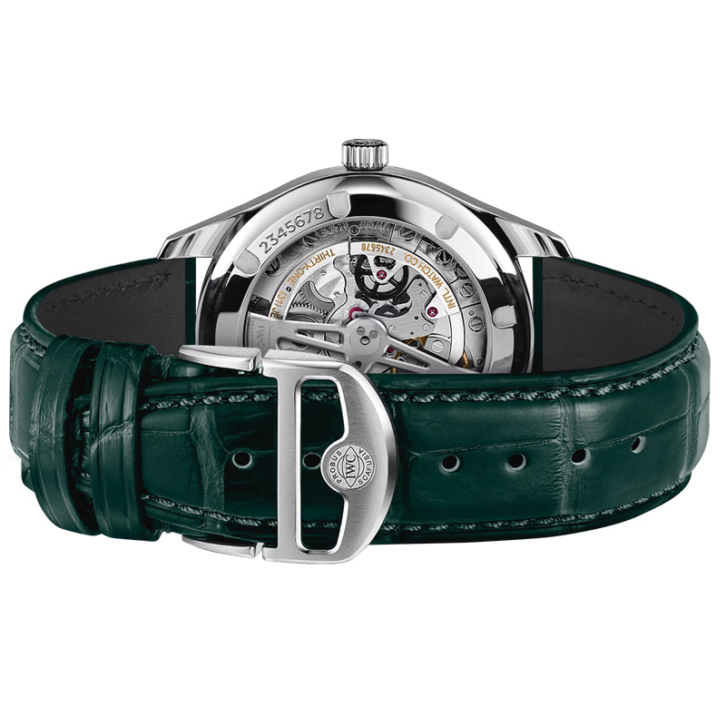 El reloj IWC Portugieser Automático 40 IW358310 destaca por su diseño elegante, que exhibe una esfera verde. Tiene una caja de acero fino de 40,4mm de diámetro. Incorpora una correa de piel de aligátor verde que garantiza un ajuste perfecto en la muñeca y ofrece un excelente confort de uso. La combinación de estilo y elegancia otorgan al Portugieser un carácter icónico propio de IWC Schaffhausen.