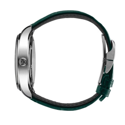• Correa de piel de aligátor verde.