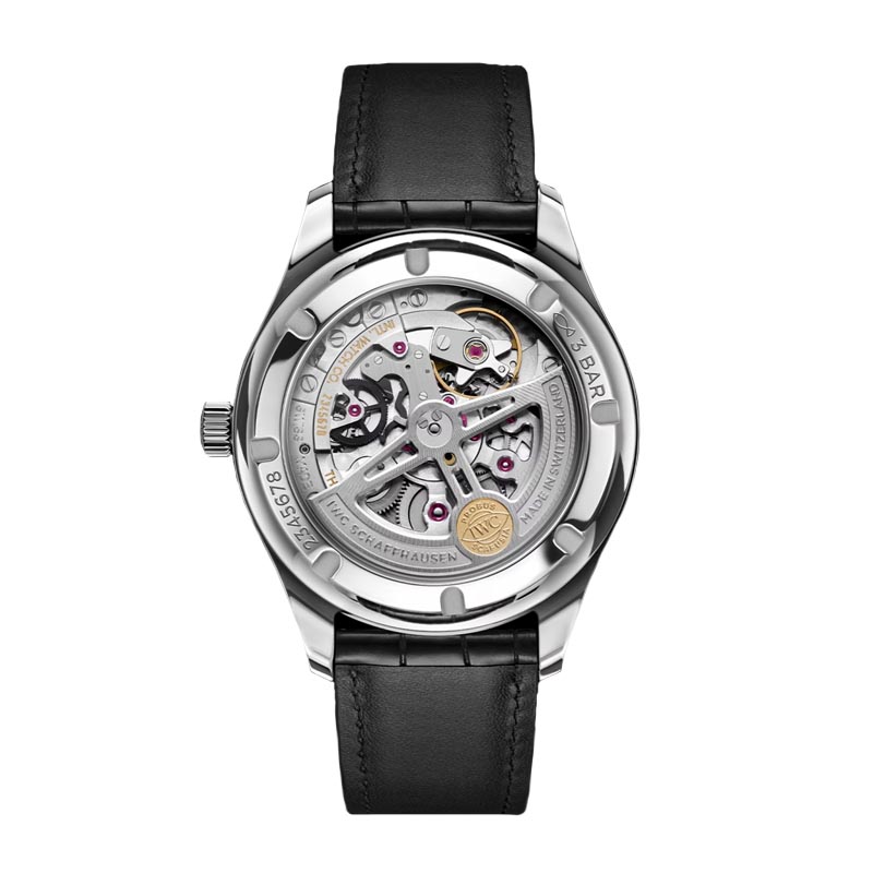 - Mecanismo: Movimiento de la manufactura IWC, cuerda automática. Frecuencia 28800 VPH (4.0 Hz). Calibre 82200.