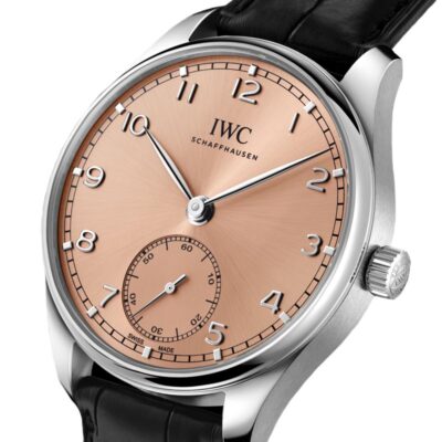 El reloj IWC Portugieser Automático 40 IW358313 cuenta con un diseño elegante, que exhibe una esfera salmón. Incorpora una correa de piel de aligátor negra que garantiza comodidad y durabilidad. Tiene una caja de acero fino con un diámetro de 40,4mm. Cuenta con un movimiento de la manufactura IWC de cuerda automática con calibre 82200, que proporciona una reserva de marcha de 60 horas. Su combinación de elegancia y funcionalidad hacen de este Portugieser un icono destacado de IWC Schaffhausen.
