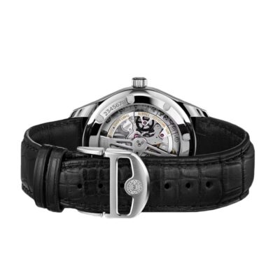 - Correa de piel de aligátor negra.