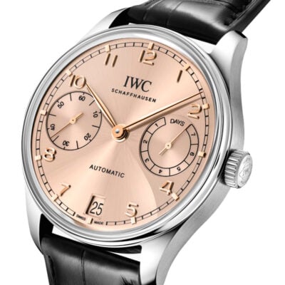El reloj IWC Portugieser Automático 42 IW501705 destaca por su diseño elegante, que exhibe una esfera beige centelleante con dos subesferas. Incorpora una correa de piel de aligátor negra que garantiza un ajuste perfecto en la muñeca y ofrece un excelente confort de uso. Con su combinación ganadora de elegancia y espíritu deportivo, el Portugieser Cronógrafo se ha convertido en uno de los mayores iconos de IWC Schaffhausen.
