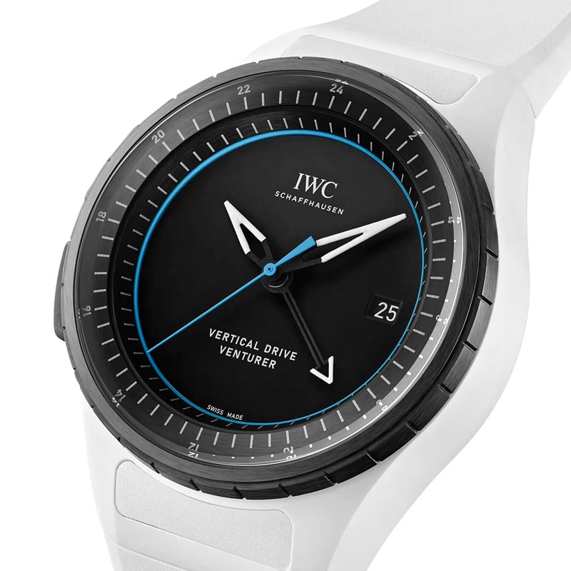 IWC Reloj de Aviador Venturer Vertical Drive IW328601. El Reloj de Aviador Venturer Vertical Drive se ha proyectado desde cero para afrontar el desafiante entorno del espacio. Su innovador sistema de bisel giratorio sustituye la corona y permite realizar todos los ajustes incluso cuando se lleva un traje espacial con guantes.