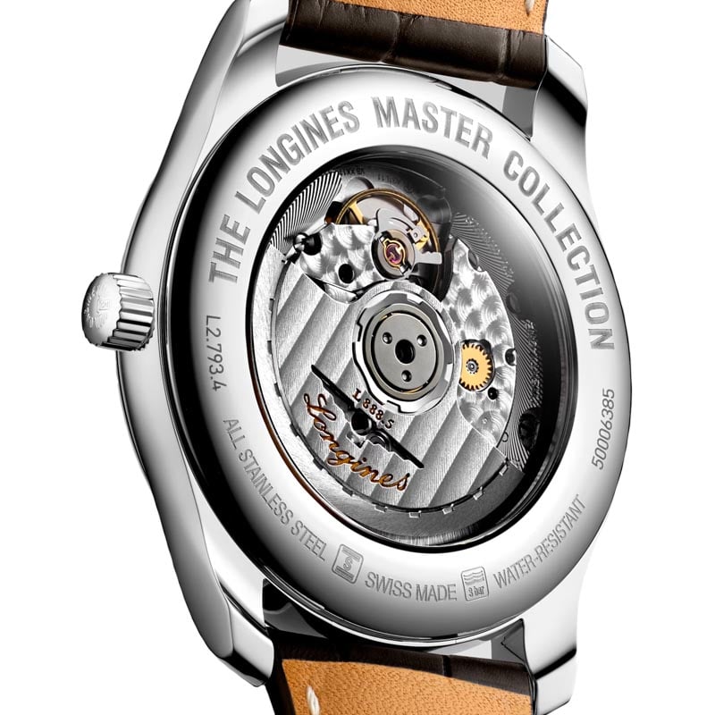 El reloj The Longines Master Collection L27934592 es parte de la serie exclusiva de relojes de la Colección Longines Master, El fondo transparente de la referencia L2.793.4.59.2 permite apreciar plenamente la minuciosa artesanía del calibre.