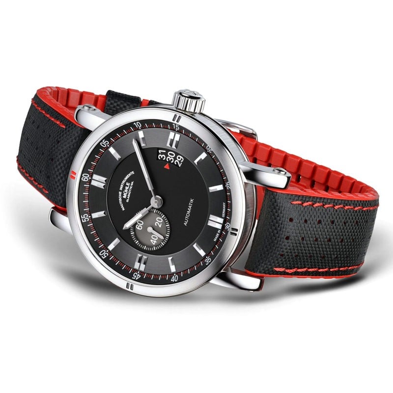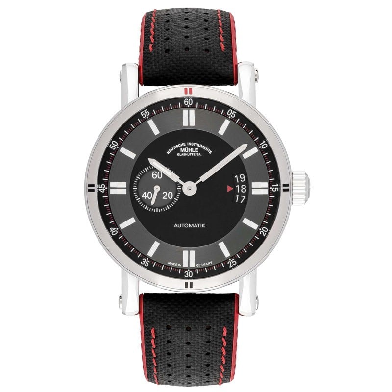 El reloj Mühle Glashütte Teutonia Sport II M1-29-73-LK cuenta con un diseño deportivo, que exhibe una esfera negra con ventana de fecha. Incorpora una correa de piel negra y caucho rojo que garantiza comodidad y durabilidad. Tiene una caja de acero inoxidable con un diámetro de 41,6mm. Cuenta con un movimiento mecánico automático con calibre SW 290-1, que proporciona una reserva de marcha de 41 horas. La combinación de estilo y diseño deportivo hacen de este Teutonia Sport II el reloj perfecto para cualquier ocasión.