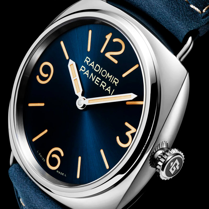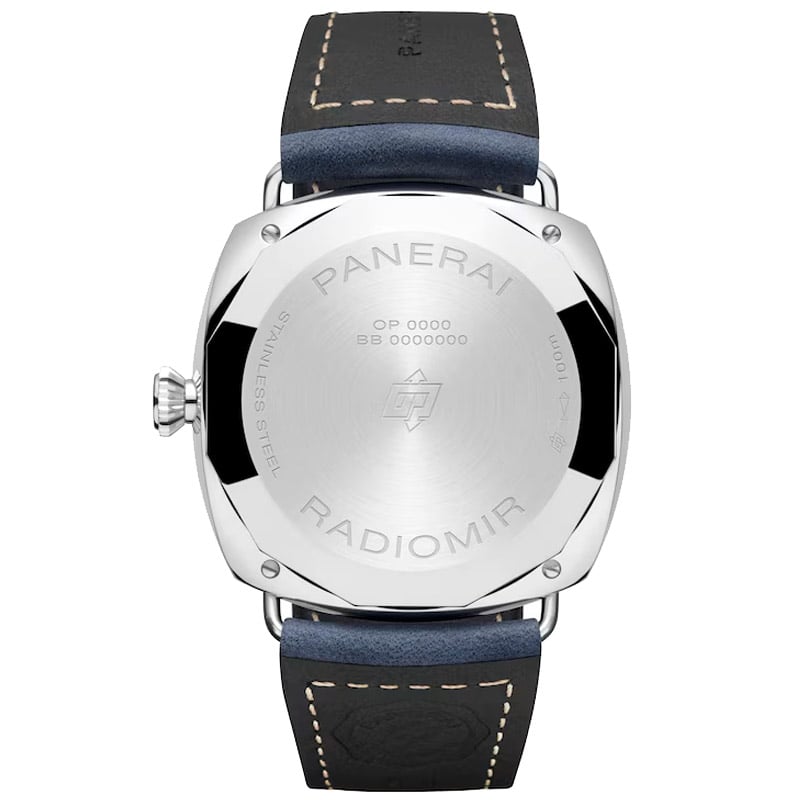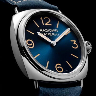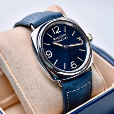 El reloj Panerai Radiomir Officine PAM01383 cuenta con un diseño elegante, que exhibe una esfera azul con efecto rayo de sol. Incorpora una correa de piel de becerro azul que garantiza comodidad y durabilidad. Tiene una caja de acero pulido con un diámetro de 45mm. Cuenta con un movimiento mecánico de cuerda manual con calibre P.6000, que proporciona una reserva de marcha de 3 días. La elegancia clásica, los detalles refinados y el atractivo vintage caracterizan a la colección Radiomir, que debe su nombre al material luminiscente patentado.