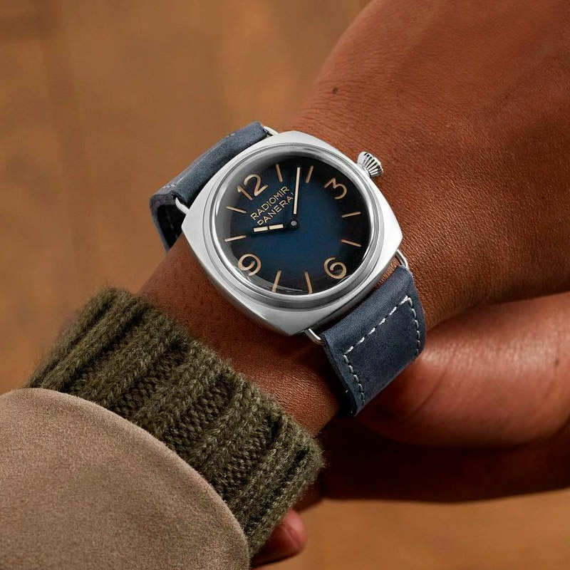 El reloj Panerai Radiomir Tre Giorni PAM01335 cuenta con un diseño elegante, que exhibe una esfera azul degradado. Incorpora una correa de piel de becerro azul que garantiza comodidad y durabilidad. Tiene una caja de acero con un diámetro de 45mm. Cuenta con un movimiento mecánico de cuerda manual con calibre P.6000, que proporciona una reserva de marcha de 3 días. La elegancia clásica, los detalles refinados y el atractivo vintage caracterizan a la colección Radiomir, que debe su nombre al material luminiscente patentado.