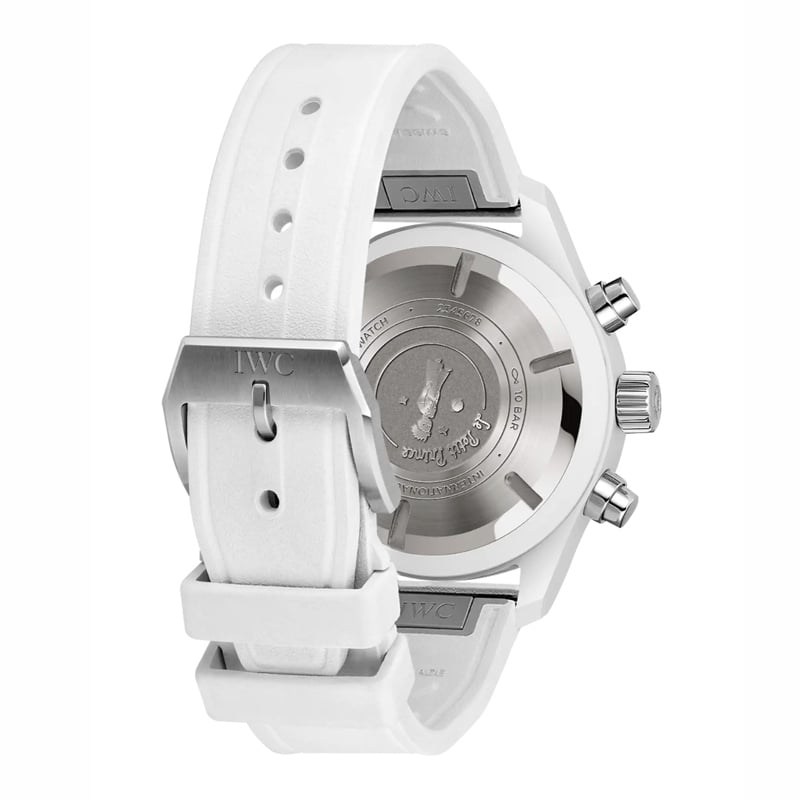 El Reloj IWC de Aviador Cronógrafo 41 ‘Le Petit Prince’ IW389410 combina el encanto atemporal del famoso cuento de Antoine de Saint-Exupéry con las excepcionales propiedades materiales y la exclusiva estética de la cerámica blanca.