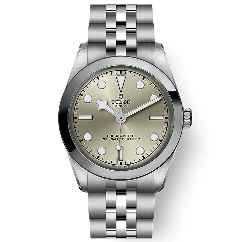 Reloj Tudor Black Bay 31 M79600-0003 de movimiento mecánico de cuerda automática. Caja de acero de 31 mm de diámetro hermética hasta 100 m. Esfera de color champán claro y brazalete de acero.