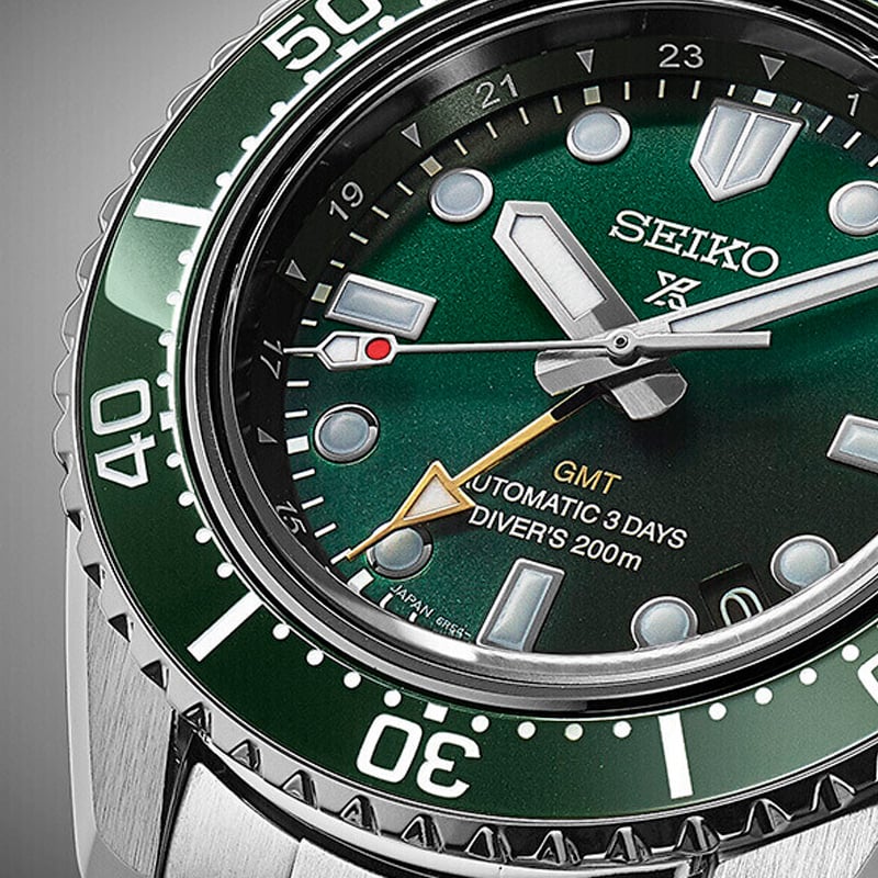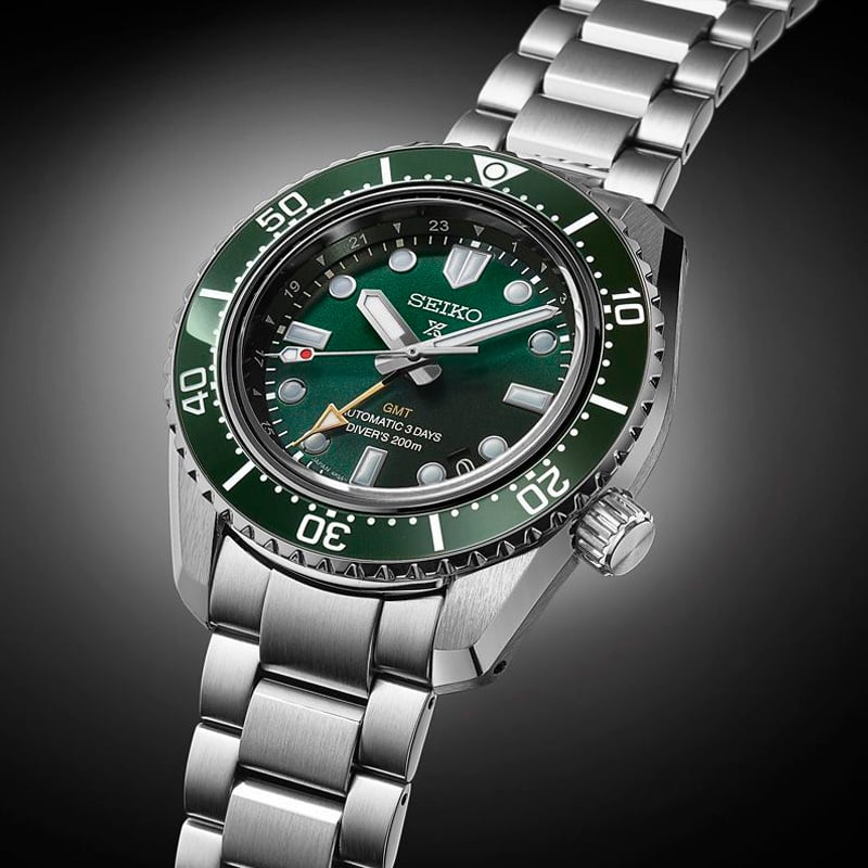 Reloj Seiko Prospex 1968 Heritage Diver’s GMT SPB381. Seiko Prospex ofrece una armonía completamente natural. Caja de acero 42mm. Esfera verde. Movimiento automático. Calibre 6R54. Funciones: Horas, minutos, indicador de los segundos, fecha. Brazalete de acero inoxidable.